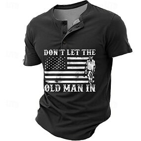 Мужская футболка с графикой Henley на короткий рукав - Не позволяй старику войти Дизайн с американским флагом в патриотическом стиле