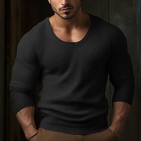 Муж. Вафельная рубашка Henley Длинный рукав Полотняное плетение Текстура Классический Современное Удобный Пуговицы Хенли Офис Повседневные Праздники Весна & осень Черный Белый Синий Футболка Хенли
