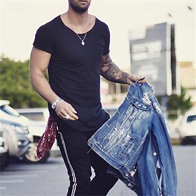 Муж. Футболка Короткие рукава V-образный вырез Лето Сплошной цвет Мода Оригинальный рисунок Классический Пэчворк Отпуск Для улицы Повседневные Черный Белый Серый Футболка для мужчин