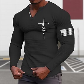 Муж. Графика Крест Рубашка Хенли Вафельная футболка Длинный рукав 3D печать Мода Оригинальный рисунок На каждый день Для спорта и активного отдыха Праздники фестиваль Весна & осень