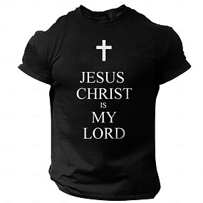 Муж. Буквы Крест Иисус Футболка 100% хлопок С короткими рукавами Графика Рубашка Черный Военно-зеленный Темно-синий Удобная футболка Для улицы Для спорта и активного отдыха Модельер одежды