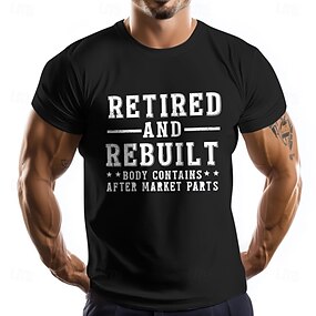 Муж. С надписью Смешной Футболка 100% хлопок С короткими рукавами Графика Рубашка Черный Военно-зеленный Темно-синий Удобная футболка Для улицы Для спорта и активного отдыха Модельер одежды