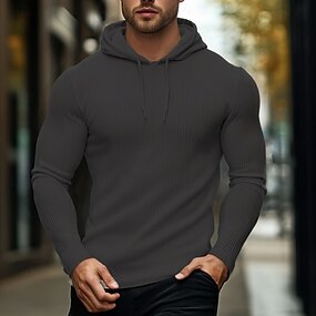 Муж. Футболка Мускулистая рубашка Трикотажная футболка в рубчик Рубашка с длинным рукавом Длинный рукав Капюшон Лето Полоски Мода Уличный стиль Круто Капюшон Учебный на открытом воздухе