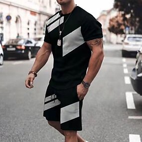 Муж. Футболки Костюмы Спортивный костюм Теннисная рубашка Комплект из шорт и футболки С короткими рукавами Вырез под горло Весна лето Контрастных цветов Спорт Мода Оригинальный рисунок 2 предм