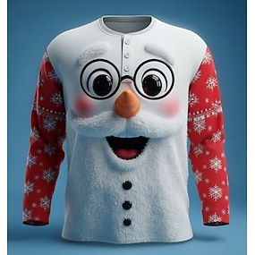 Муж. Новогодняя тематика Снеговик Снежинки Рубашка Хенли Длинный рукав Мода Симпатичные Стиль Повседневные Повседневные Праздники На выход Зима Весна & осень Белый Хенли Футболка Хенли