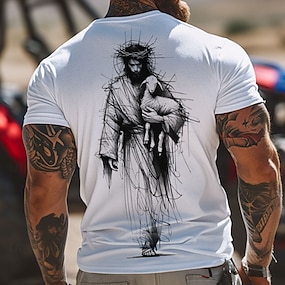 Пасха Муж. Иисус христианин Футболка С короткими рукавами Футболка 3D печать Вырез под горло Рубашка Оригинальный рисунок На каждый день Для вечеринок Праздники Белый Лето Весна Одежда S M L XL XXL