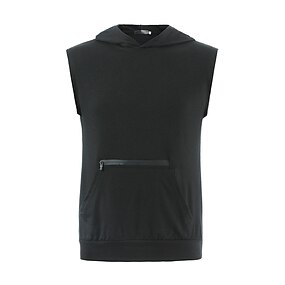 Муж. Безрукавка Майки Без рукавов Капюшон Лето Полотняное плетение Мода Классика На каждый день Молния Карман Отпуск спорт Повседневные Черный Винный Светло-серый Футболка для мужчин
