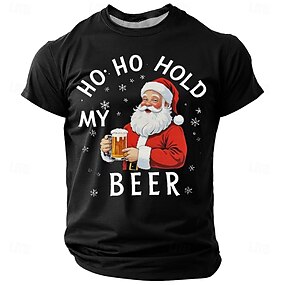Новогодняя тематика Муж. Дед Мороз Футболка С короткими рукавами Футболка 3D печать Вырез под горло Рубашка Повседневные Оригинальный рисунок Художественный Отпуск Для вечеринок Для улицы