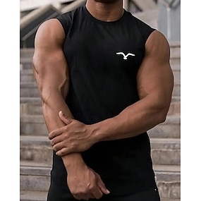Муж. Графика Буквы Безрукавка Майки Майки Racerback Без рукавов Футболка U-образный вырез Рубашка Мода Мышцы Тренировка Отпуск спорт Повседневные Черный Белый Желтый Лето Одежда M L XL XXL