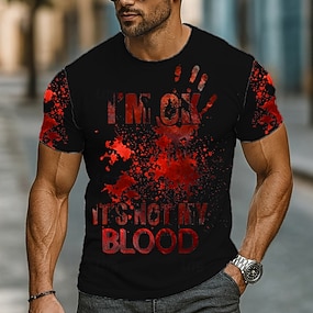 Halloween Муж. Брызги крови Пятна крови Футболка С короткими рукавами Футболка 3D печать Вырез под горло Рубашка преувеличены Оригинальный рисунок Ужас Для вечеринок Для улицы Повседневные