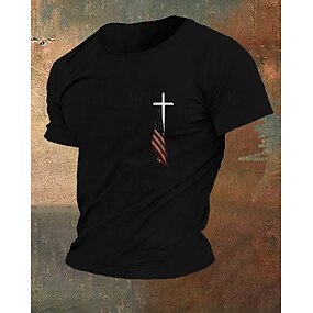 Муж. Американский флаг США христианин Футболка С короткими рукавами Футболка 3D печать Вырез под горло Рубашка Повседневные Армия Для улицы Повседневные Черный Красный Синий Лето Весна Одежда S M L