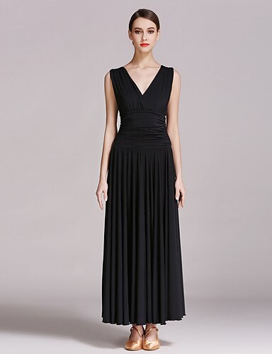 Бальные танцы Платье Плиссировка Чистый цвет Жен. Выступление Учебный Без рукавов Средняя талия Ледяной шелк