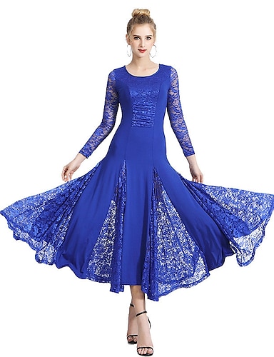 Бальные танцы Платье Стразы Кружева Чистый цвет Жен. Выступление Для вечеринок Длинный рукав Спандекс
