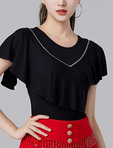 Латино Бальные танцы Кофты Оборки Чистый цвет Планка Жен. Выступление Учебный С короткими рукавами Завышенная талия Модал