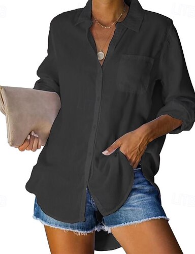 женская рубашка современная с длинным рукавом обычная рубашка с воротником рабочая черная белая зеленая хаки весна осень зима