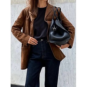 Жен. Блейзер Сохраняет тепло Удобный Карман Пуговицы Винтаж Полотняное плетение Отпуск На каждый день На выход выходные Обычная Отложной Стандартный Длинный рукав Верхняя одежда Коричневый Осень Зима