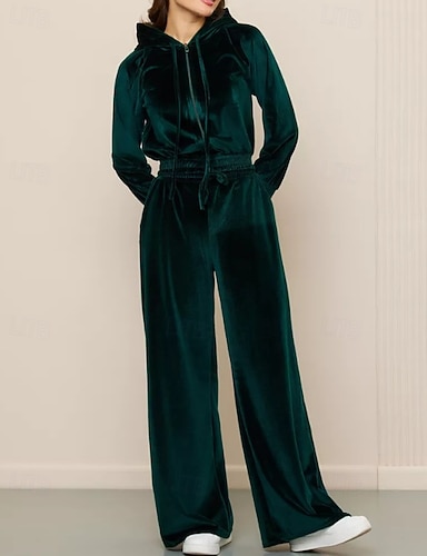 Жен. Активный Мода Блуза Толстовка Комплекты брюк Длинный рукав Капюшон Сплошной цвет Молния Отпуск Праздники Черный Розовый Военно-зеленный Осень Стандартный