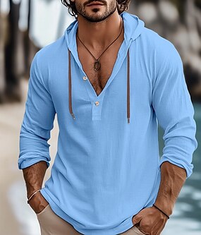 Муж. Рубашка льняная рубашка Летняя рубашка Одежда для пляжа Полотняное плетение Отпуск Кьюриз Белый Синий Коричневый Зеленый Длинный рукав Капюшон Весна лето Одежда