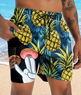 Муж. Ананас Смешной Пончики Шорты с подкладкой Плавки 2 в 1 Купальные шорты Нормальная Гавайский Отпуск Праздники Одежда для пляжа Боковые карманы С компрессионным вкладышем Эластичный шнурок на талии