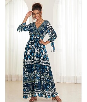 Макси-платье для женщин Повседневное платье Цветочный Принт V-образный вырез Повседневное Отпуск 3/4 длины Рукав Лето Весна