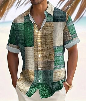 Муж. Геометрический принт Контрастных цветов Пэчворк Рубашка Повседневная рубашка Кнопка рубашка С короткими рукавами Мода Повседневная Отпуск На каждый день Праздники Лето Весна Отложной 3D