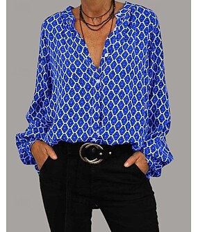 Женская рубашка с длинным рукавом кнопка блуза гавайская синий графические принты принт с пуговицами повседневная выходные базовая бохо V-образный вырез длинный свободный крой летние праздничные вещи