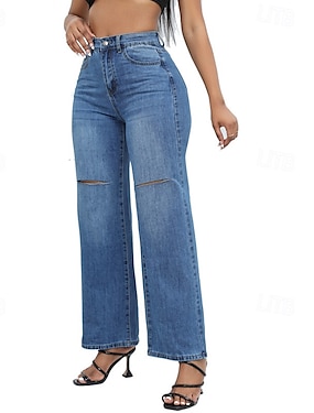 Жен. Нормальная Джинсы Уличный стиль Стиль Полная длина Завышенная Сплошной цвет Карман удобный Воздухопроницаемость Мягкий Слабоэластичная Для улицы Повседневные Светло-синий Темно-синий