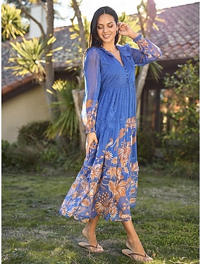 шифоновое платье в стиле бохо с пышными рукавами и тропическими цветами