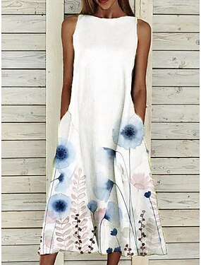 Макси-платье для женщин Платье-солнце Платье-шифт Платье с лямками Мода Уличная мода Современное На открытом воздухе Отпуск Вечеринка Свободный крой Омбре Цветочный Мрамор Безрукавный Круглый