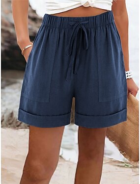 Жен. Шорты из хлопка и льна Чино Шорты Классический Короткие Завышенная Полотняное плетение Карман Эластичный пояс удобный Мягкий Удобный Слабоэластичная на открытом воздухе Для улицы