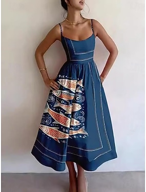 Жен. Платье средней длины Платье-футляр Отпуск На каждый день Формальная Для вечеринок Графика Животное Рыбки Без рукавов На тонких бретелях Белый+Черный Синий / Белый Белый Красный Лето Весна