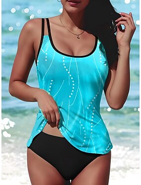 Женские купальники Танкини 2 предмета Шорты купальник 2 предмета Печать Пляжная одежда Летний полосатый Без рукавов Купальники
