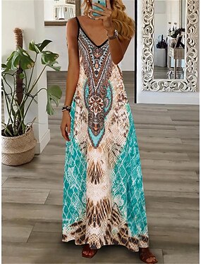 Жен. Длинное платье Повседневное платье Платье A-силуэта Платье-комбинация Платье с принтом Винтаж Ретро На каждый день на открытом воздухе Повседневные Свидание Стандартный Геометрический принт Этно