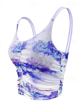 Жен. Бюстгальтер для йоги Укороченный топ для йоги Бельё Быстровысыхающий Средний уровень поддержки Дышащий Мягкий Открытая спина Рисунок Спорт Спортивная одежда Белый Синий