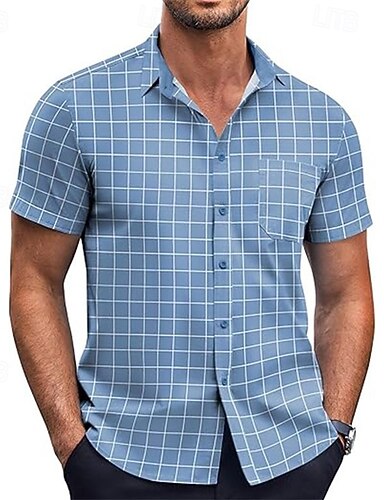 Муж. Рубашка Летняя рубашка Повседневная рубашка Пляжная рубашка Кнопка рубашка Красный Темно синий Синий Зеленый Темно-синий Длинный рукав В клетку Лацкан Отпуск Гавайский Кнопка вниз Одежда 100