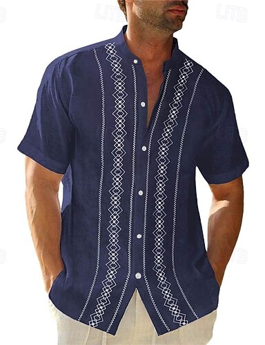 Муж. Рубашка гуаябера Летняя рубашка Повседневная рубашка Кнопка рубашка Черный Белый Синий Зеленый Серый С короткими рукавами Бохо Пейсли Дамаск Сплошной/однотонный цвет