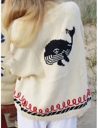 Жен. Вязаная ткань Кардиган Элегантный стиль Мода Уличный стиль Графика Животное Хомут V-образный вырез Карман Трикотаж Длинный рукав Обычные топы Вязать на открытом воздухе Повседневные выходные
