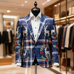 Новогодняя тематика Муж. Каждый Новогодняя ёлка Пиджак Пальто Удобный Дышащий Художественный На каждый день Вечерние наряды Повседневные фестиваль 3D печать Пуговицы Наступила зима Острый