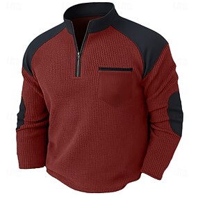 Муж. Вафельный тройник Футболка Футболка с четвертью молнией Длинный рукав Воротник-стойка Осень Зима Весна & осень Сплошной цвет Вязаная одежда Повседневные На каждый день Застегнуться Молния