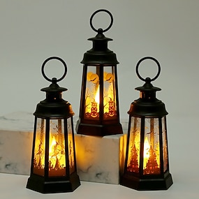 1 шт. 14,5 см декоративный светодиодный фонарь для Хэллоуина, настольное украшение в стиле ретро, шестиугольный светодиодный фонарь для вечеринки, подвесной светильник