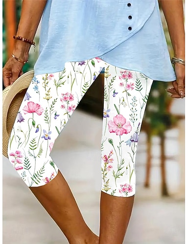 Жен. Брюки-капри Брюки Леггинсы Уличный стиль На каждый день До щиколотки Средняя талия Цветы Эластичная талия С принтом удобный На открытом воздухе Удобный на открытом воздухе Отпуск Повседневные