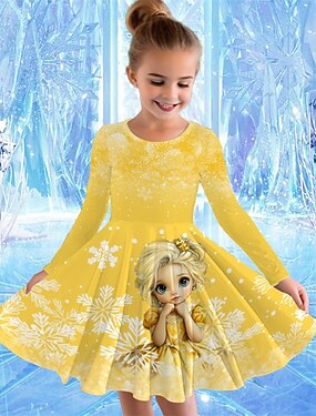 Девушки ' 3D Графика Мультипликация В снежинку Платье Длинный рукав Лето Весна Отпуск Повседневные Праздники Принцесса Красивый Милая Дети 4-12 лет Повседневное платье Платье A-силуэта До колена