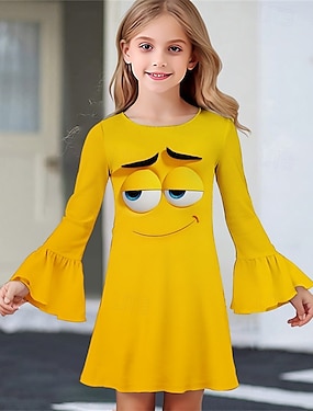 Девушки ' 3D Мультипликация Платье Платье с рюшами Длинный рукав Лето Весна Отпуск Повседневные Праздники Красивый Милая Дети 4-12 лет Повседневное платье До колена Стандартный
