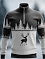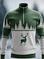 Новогодняя тематика Муж. Рождественский образец Поло Длинный рукав Отложной Современное Для отдыха Праздники На каждый день Молния 3D печать Весна Осень Зима Черный Зеленый Винный