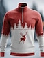 Новогодняя тематика Муж. Каждый Поло Длинный рукав Отложной Современное Для отдыха На каждый день фестиваль Молния 3D печать Весна Осень Зима Черный Красный Темно-зеленый