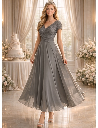 Платье для вечеринки длины пола A-Line коктейльное платье платье для гостей на свадьбу платье для матери невесты короткий рукав V-образный вырез элегантное свадебное платье с однотонным цветом