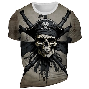 Муж. Графика Скелет Пираты Футболка С короткими рукавами Футболка 3D печать Вырез под горло Рубашка Повседневные Оригинальный рисунок Ретро Для спорта и активного отдыха Праздники На выход