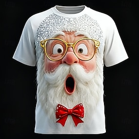 Новогодняя тематика Муж. Дед Мороз Футболка С короткими рукавами Футболка 3D печать Вырез под горло Рубашка Повседневные Оригинальный рисунок Художественный Отпуск Для вечеринок Для улицы Белый 1