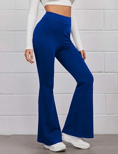 Жен. Беллое дно Брюки Уличный стиль На каждый день Полная длина Средняя талия Полотняное плетение Эластичный шнурок На открытом воздухе Удобный Отпуск На выход