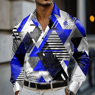 Муж. Геометрический принт Рубашка Атласная рубашка Длинный рукав Мода Повседневная Официальные Отпуск На каждый день Лето Весна Осень Отложной 3D печать Рубашки на пуговицах